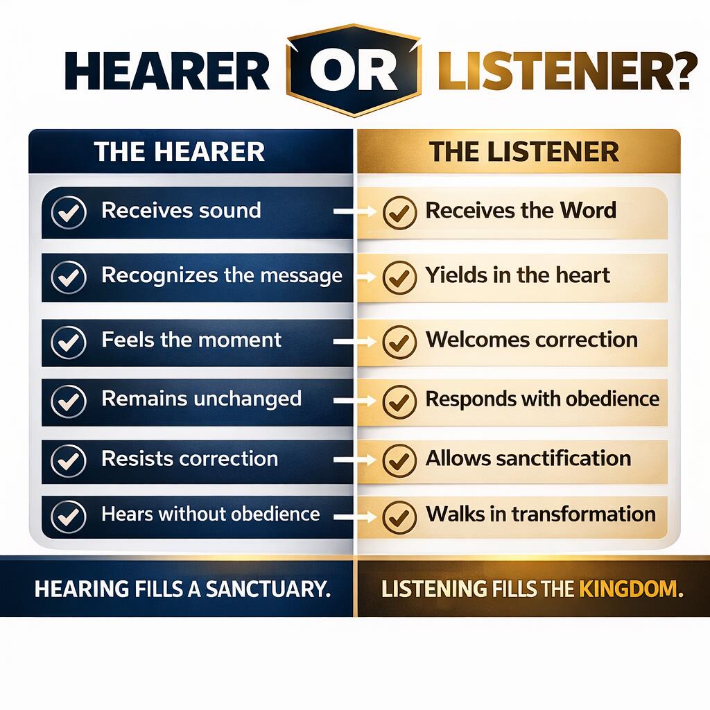 This past Sunday’s message, “The End Time Sanctified Listener,” reminded us that hearing the Word of God and truly listening to it are not the same thing. The message challenged us to move beyond simply receiving sound with our ears and to become believers whose hearts are fully yielded to God. We were reminded that the Word of God is meant to draw us closer to repentance, holiness, obedience, surrender, and sanctification—and that in these last days, God is looking for a sanctified remnant that will not just hear His voice, but respond with a wholehearted “Yes, Lord.”