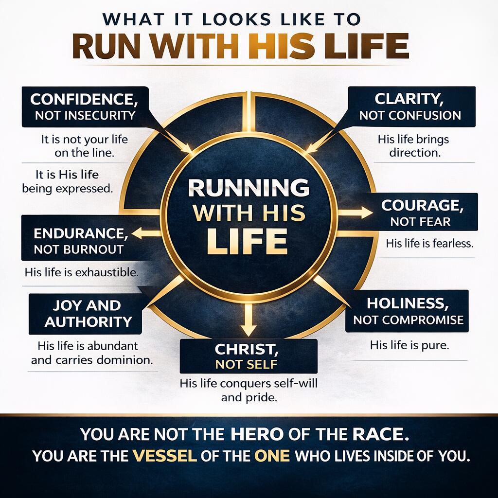 When we run with His life, we are no longer fueled by fear, anxiety, or exhaustion. We begin to move with the strength, clarity, courage, endurance, and purpose that come from Christ living in us. This message is a powerful reminder that we are not called to live as fugitives trying to escape life, but as vessels carrying divine assignment, walking in the victory and abundant life of Jesus Christ.